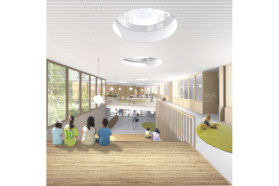 La fase 2 aborda, principalmente, el aulario de infantil del Master Plan (MP) que desarrolla la planificación del futuro crecimiento del DSV. Se trata del edificio de menor envergadura del conjunto. Su volumetría y su orientación responden a su programa. Su ubicación en el conjunto da una respuesta urbana a un punto de la parcela extraño y ambiguo, a medio camino entre las tipologías de edificación abierta y de ensanche. La espacialidad de este edificio es generosa y recreativa.