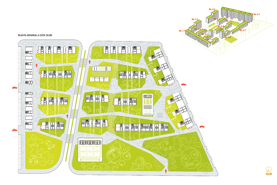 La propuesta presentada bajo el lema “MIRANDO AL SUR” responde por un lado, y con total literalidad, a las indiscutibles ventajas de la orientación de mediodía como el mejor recurso energético conocido: el sol calienta en invierno y es fácil de controlar el resto del año. Pero “MIRANDO AL SUR” supone también una reivindicación de una manera de vivir así como de toda una cultura ligada a la ciudad meridional, la Ciudad Mediterránea.